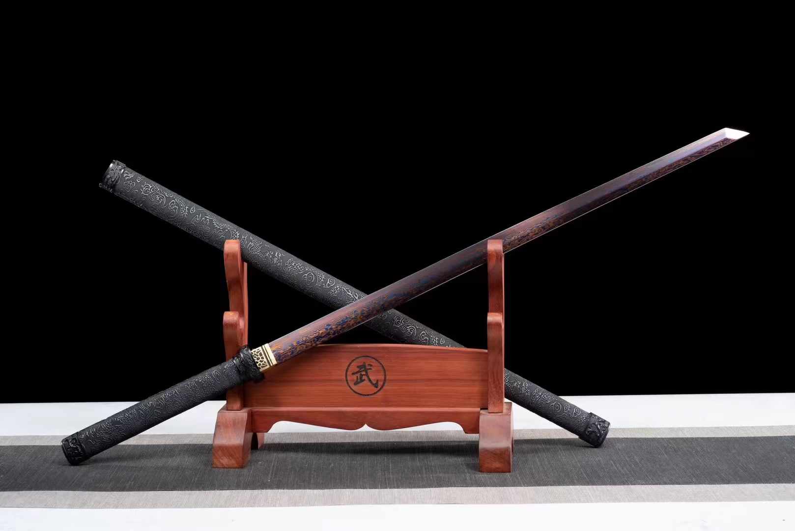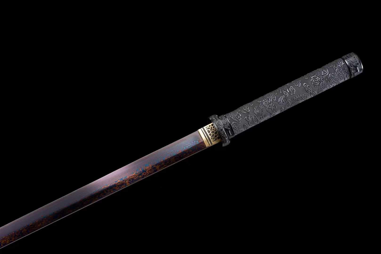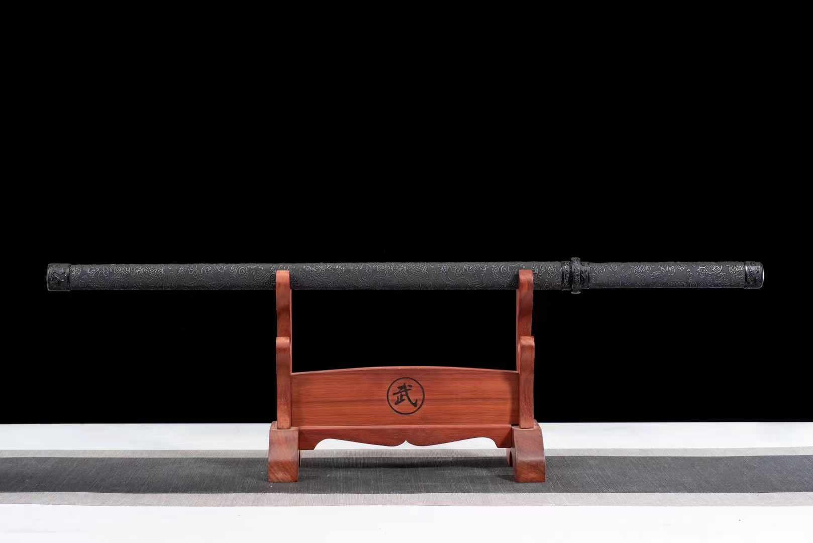 - Capable of effortlessly cutting through iron without damage, this sword's performance is equally matched by its impressive size. With a total length of 104cm and a 72cm blade, it delivers formidable cutting power.