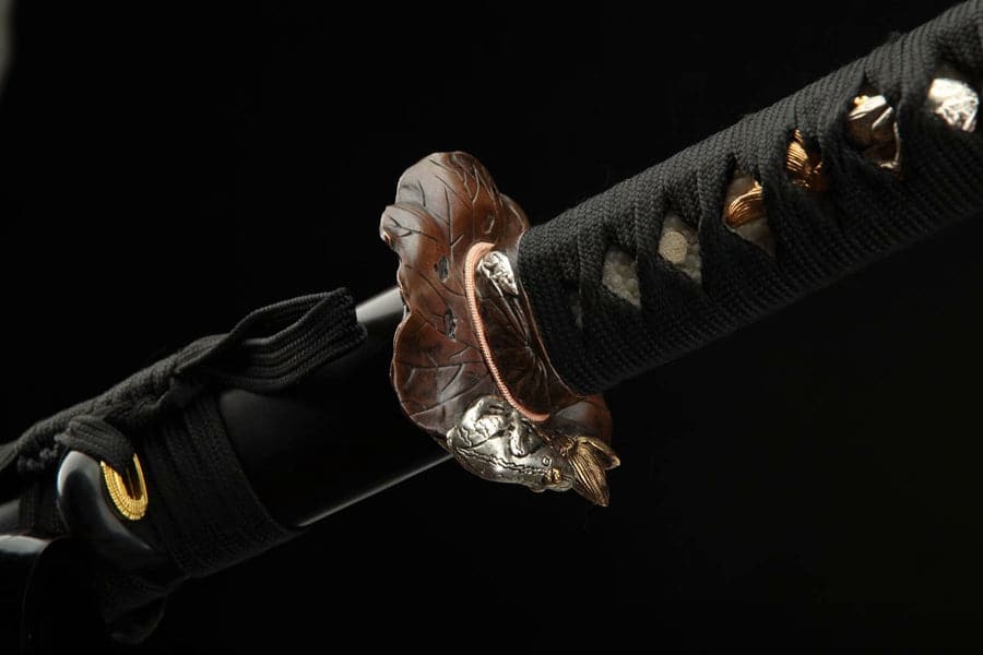 Hand Forged Japanese Samurai Katana Frog Prince Pattern Steel Gilt Silver Guard
