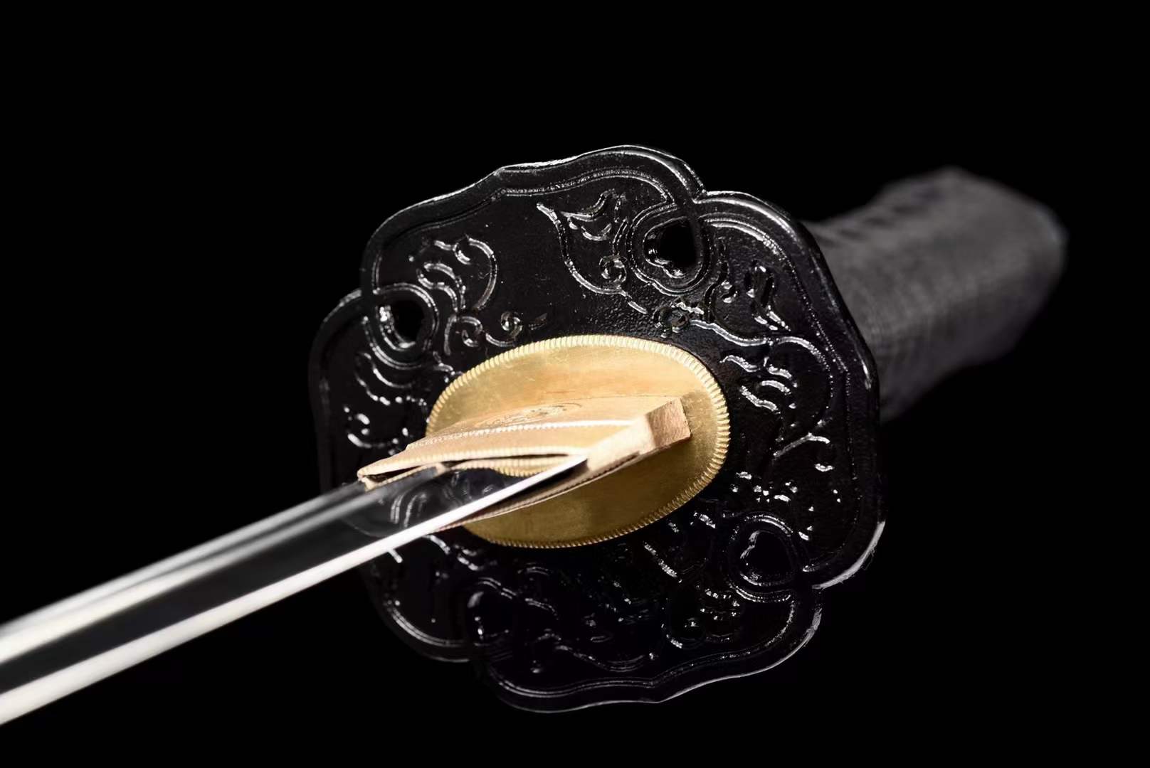 Features: Steel T10 steel forging, open son and mother blood groove, using the ancient method of cladding firing edge quenching process. Hand 17 exquisite water polishing! High hardness and rigidity.