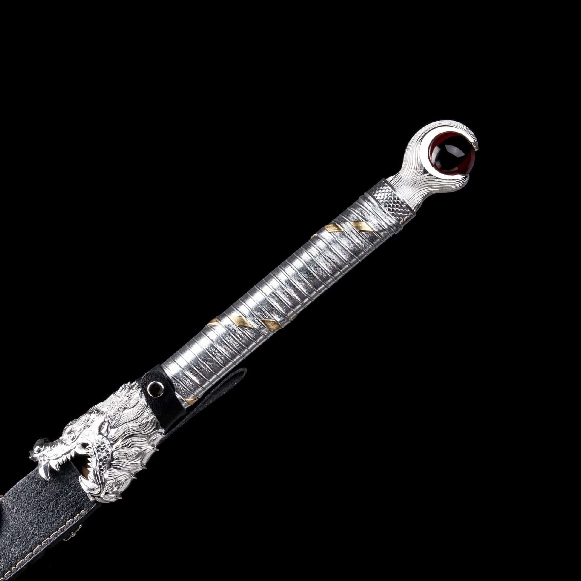Handmade Dragon Battle Blade Manganese Steel Chinese Sword Black & White