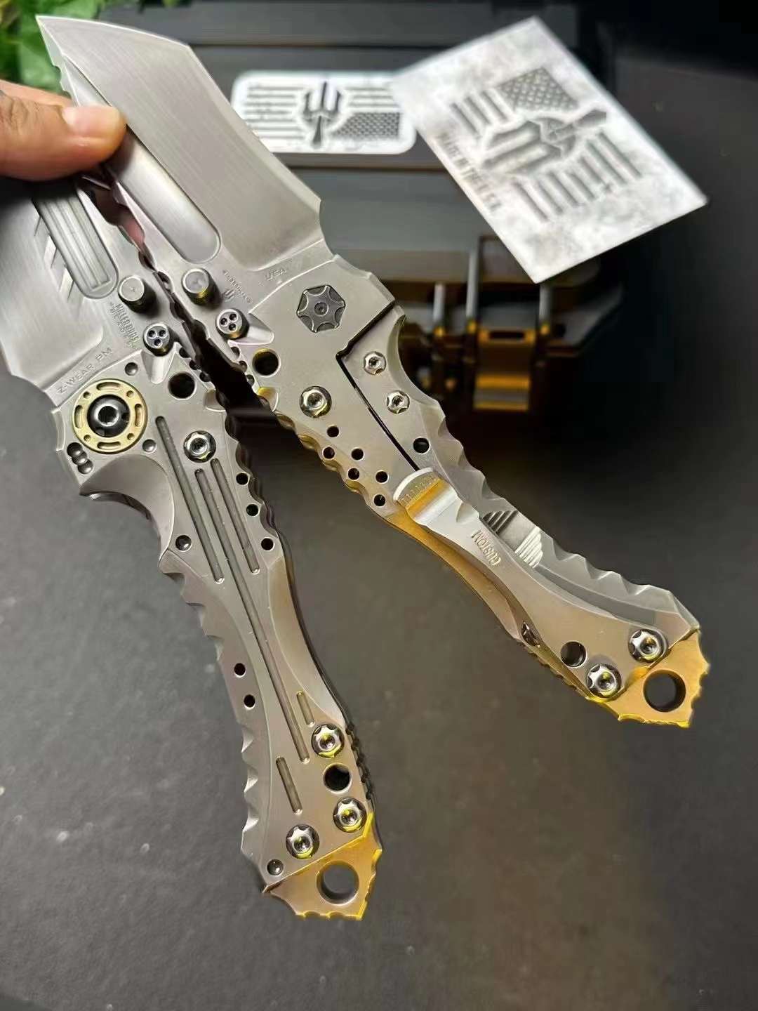 - Handle Material: Handcrafted and CNC-machined TC4 titanium alloy