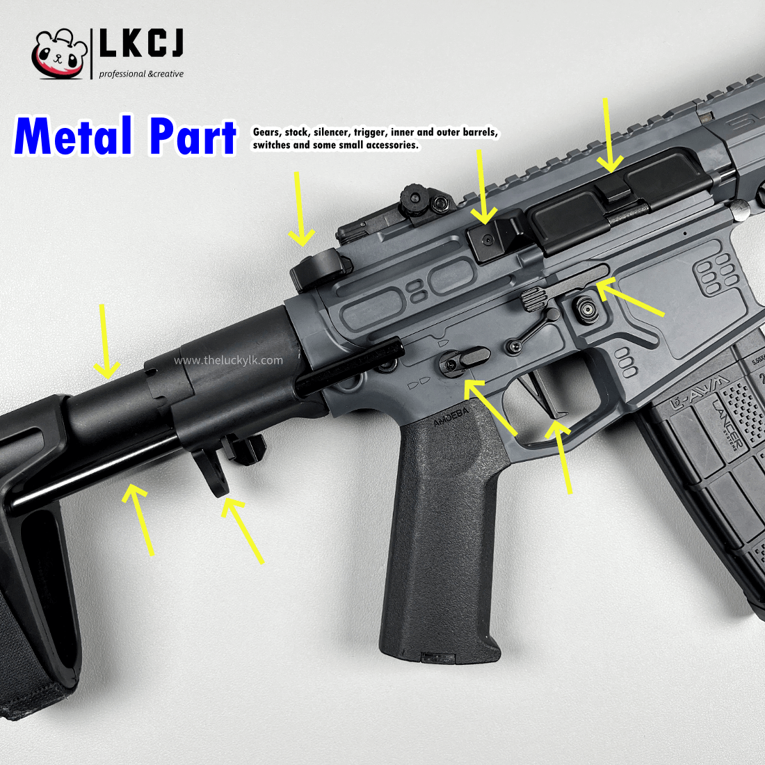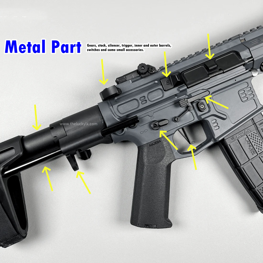 - Materials:Metal barrels, metal gears,metal stock,barrel and some small metal parts