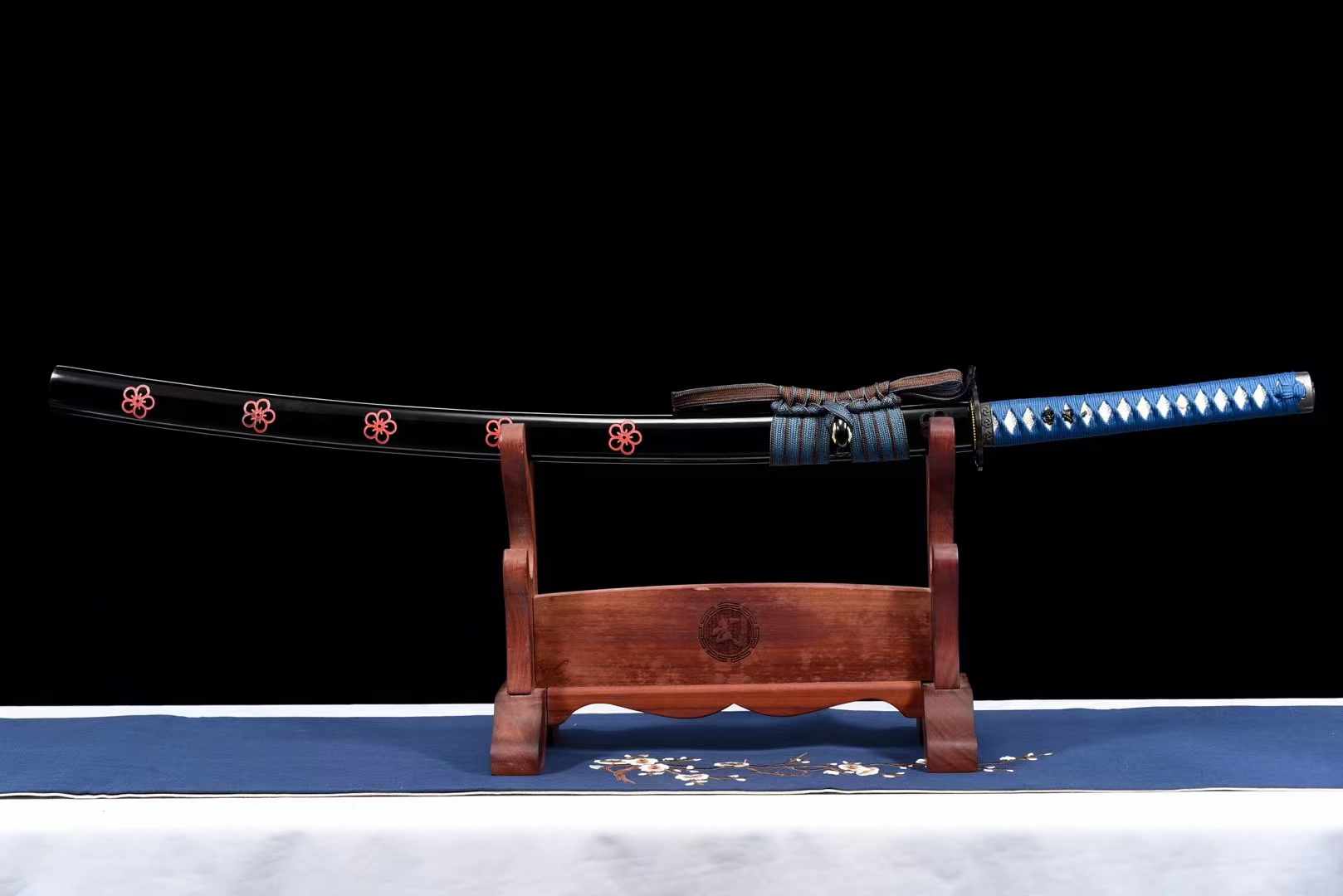 - Lacquered Solid Wood Carved Scabbard with Decorative Sword Tassel